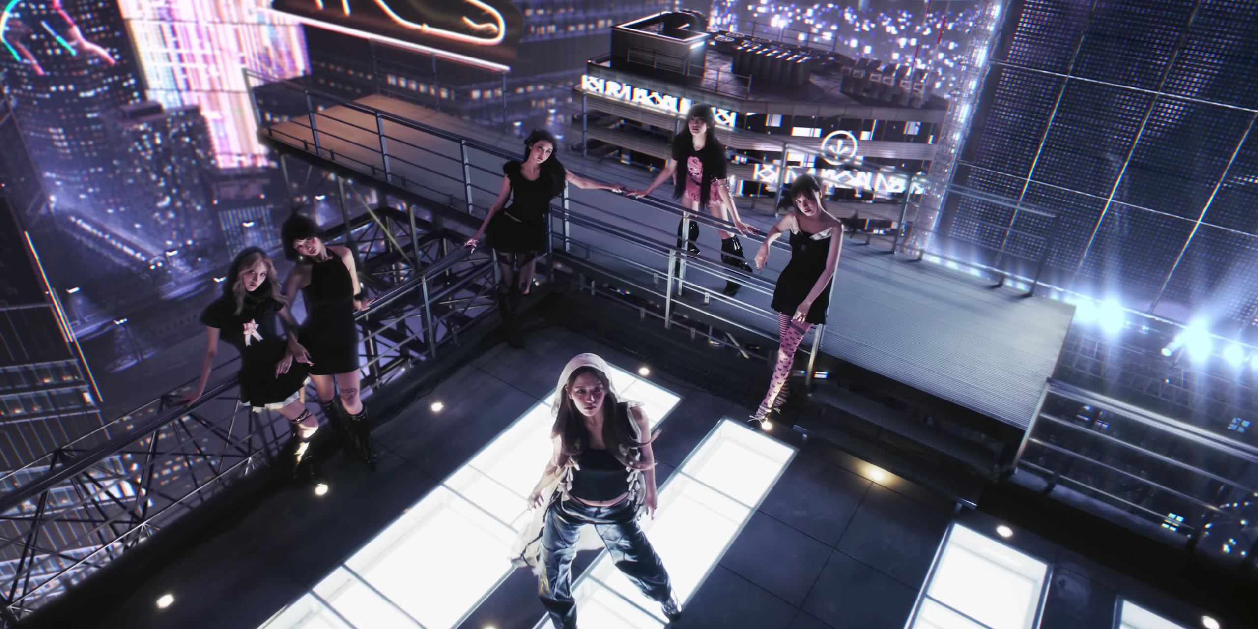 그녀들은 'NO WAY OUT', 'DREAMS'라는 번호판이 부착된 트레일러 트럭 위에서 세련된 퍼포먼스를 선보였습니다.