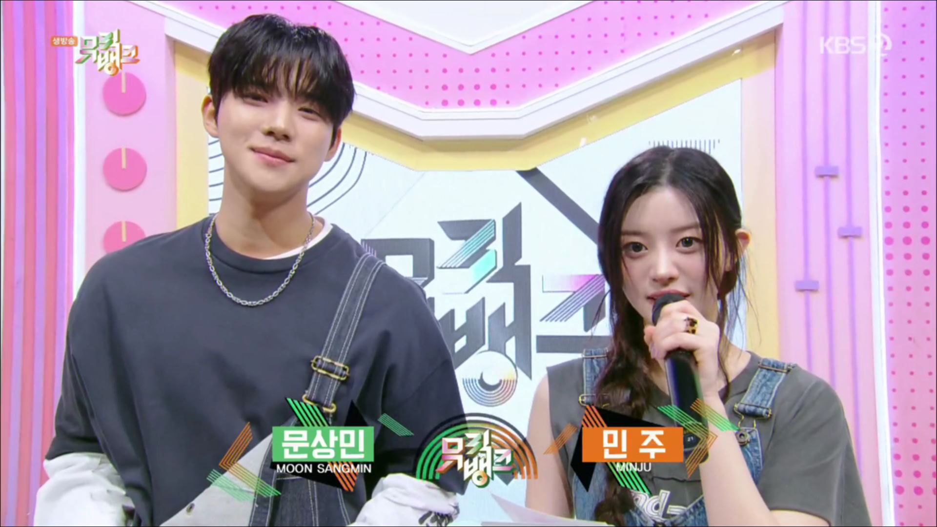 1265회 뮤직뱅크에서는 깜찍한 멜빵바지와 치마를 입은 MC 문상민과 민주가 시청자들에게 첫인사를 했는데요~~~