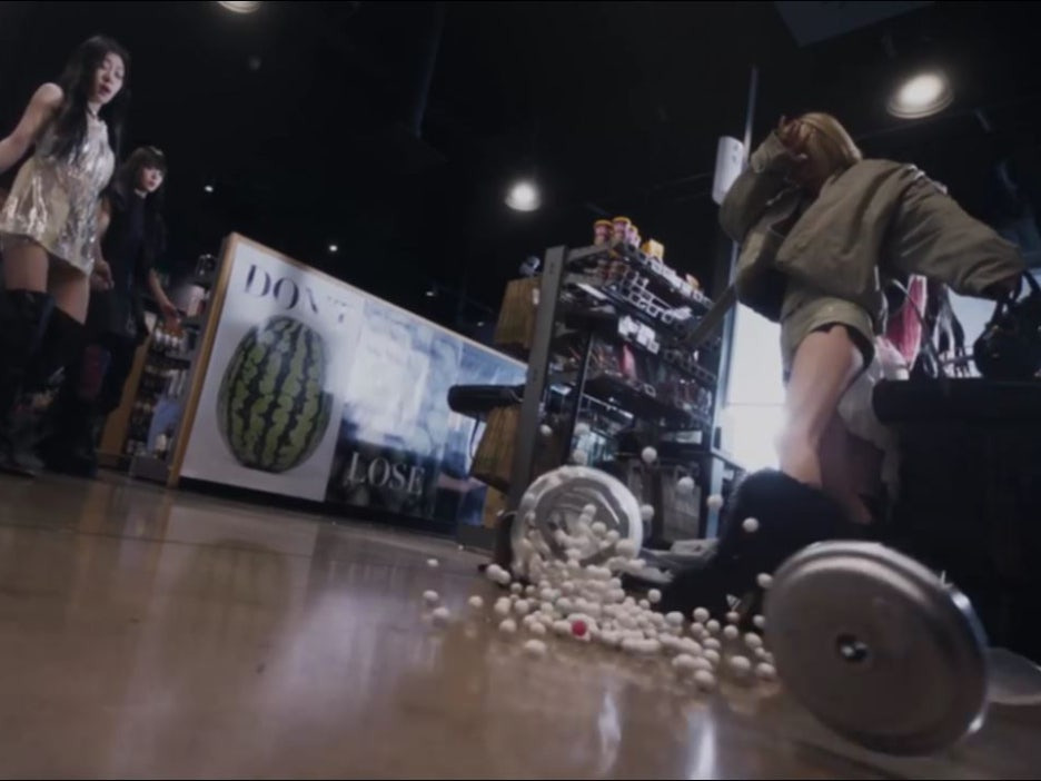 그러자 마트에 진열된 껌볼머신이 바닥에 떨어지면서