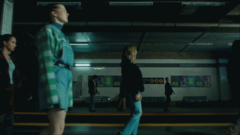 똑같은 모습으로 지하철을 이용하는 승객들과 영상 속에 비춰지는 단조로운 풍경들!