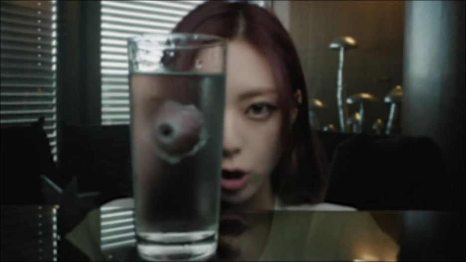 유나가 컵 속에 들어있는 눈동자(아마도 영상 초반 쓰러져 있던 여자의 한쪽눈?)를 들여다보는 장면이 나오는데요~~~