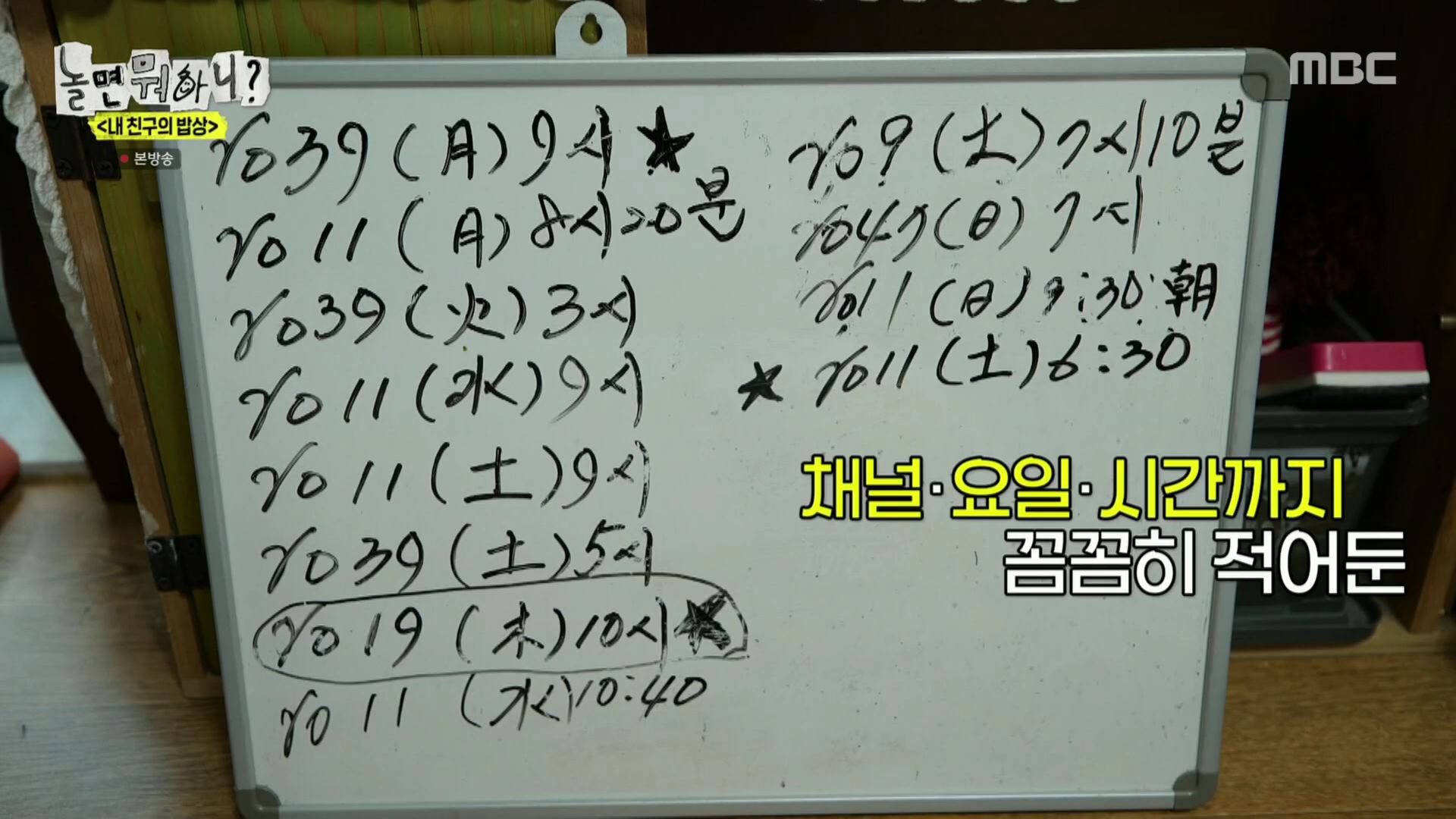 그러나 식사 내내 임우일의 방송인 줄 알았던 모친의 애착 방송 편성표가 시선을 강탈했는데요~~~
