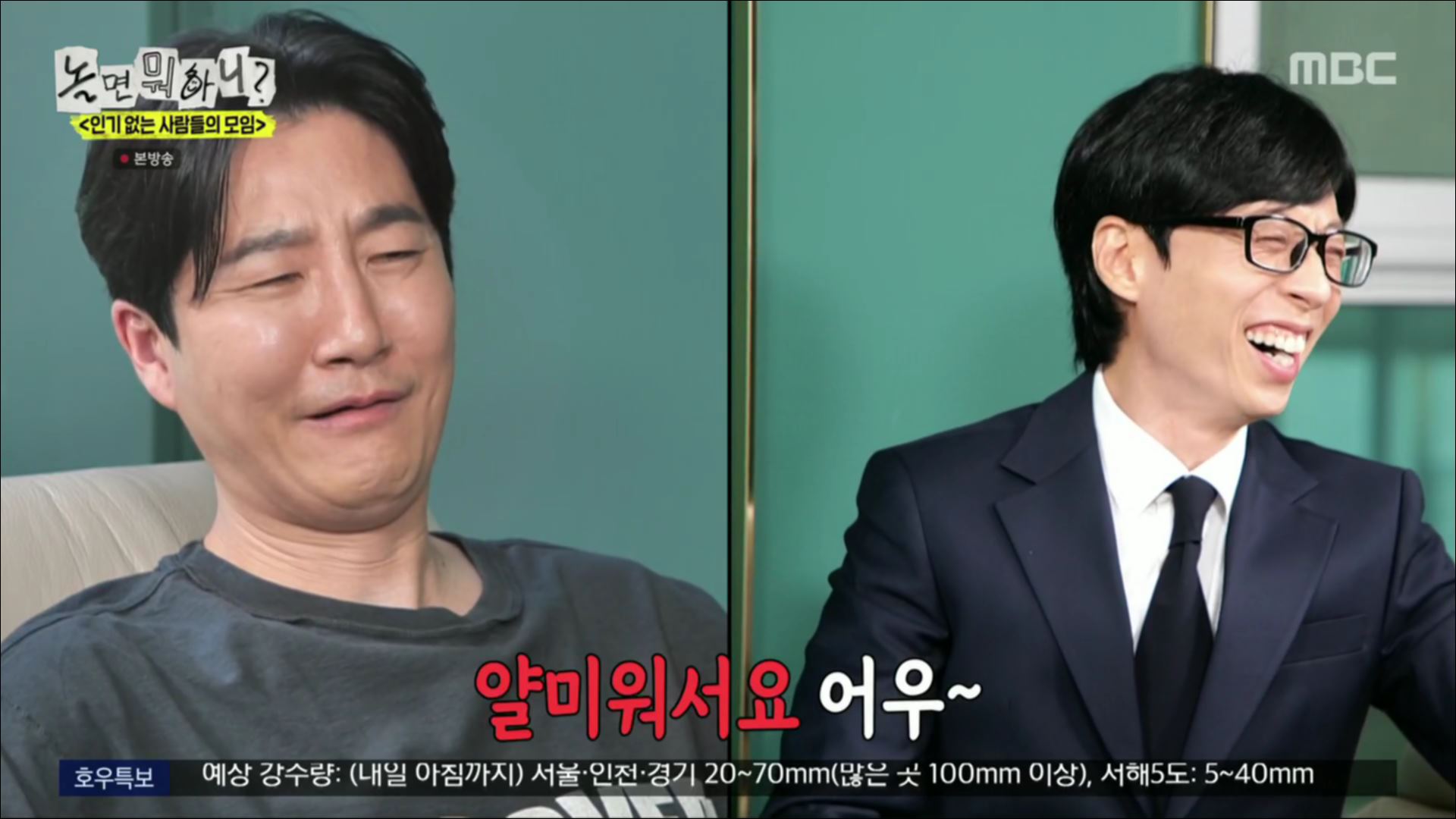 “눈을 왜 그렇게 뜨고 이야기하냐”는 유재석에게 “얄미워서요”라고 일침을 가해 웃음을 자아냈는데요~~~
