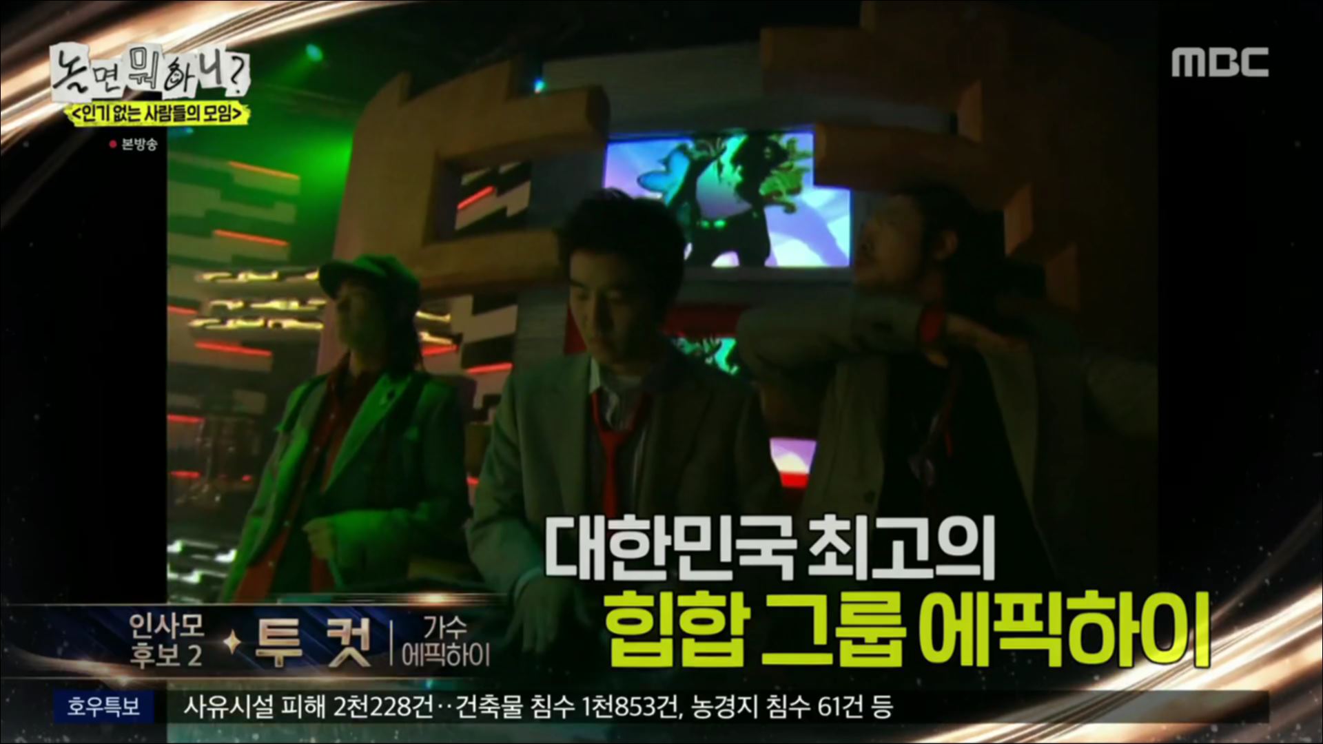 유재석은 에픽하이 멤버들에게 치이는 투컷에게 "너 그동안 너무 참았어"라면서