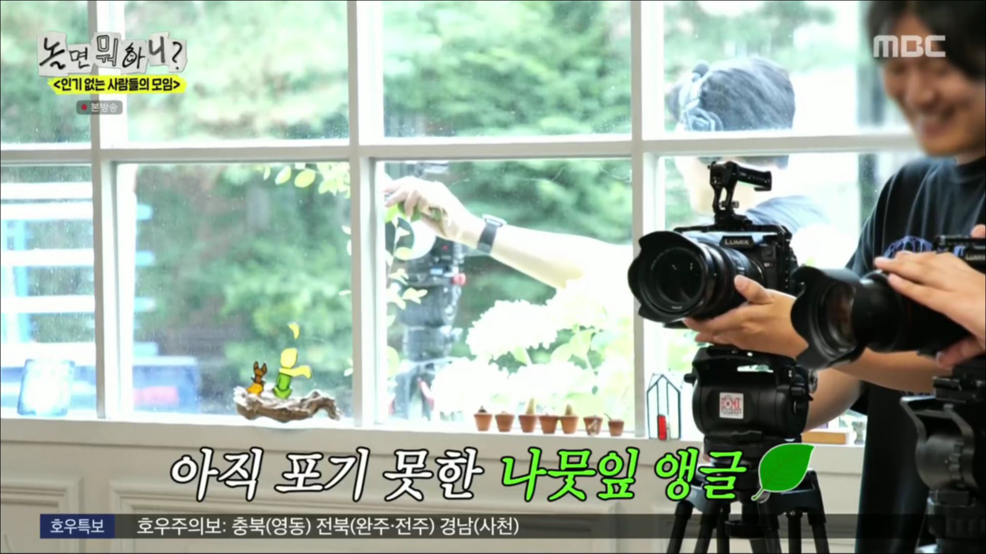 그 와중에 카메라 감독은 허경환보다 나뭇잎에 초점을 맞췄고,