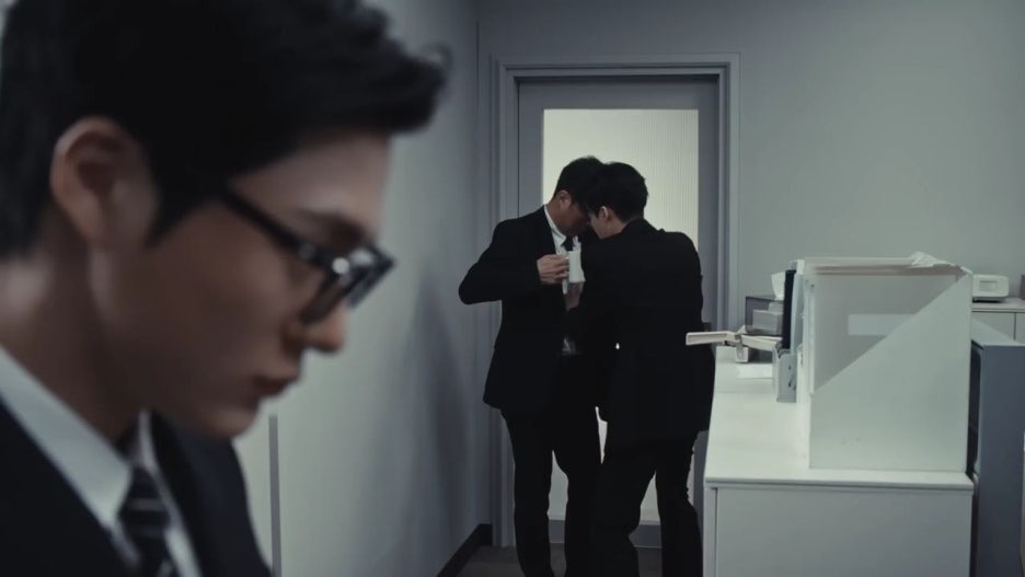 둘은 아무 일도 없었다는 듯이 회의실로 들어가게 됩니다.