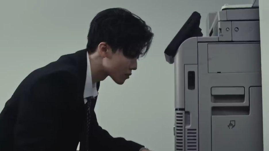 그러다 종이를 들고 복사기 앞에 서있던 재민은