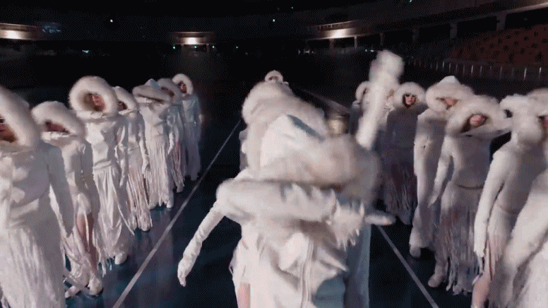 화이트 톤의 의상을 입은 메가 크루가 만들어내는 일사불란한 움직임과 그 위에 선 멤버들은 퍼포먼스의 중심을 이뤘습니다.